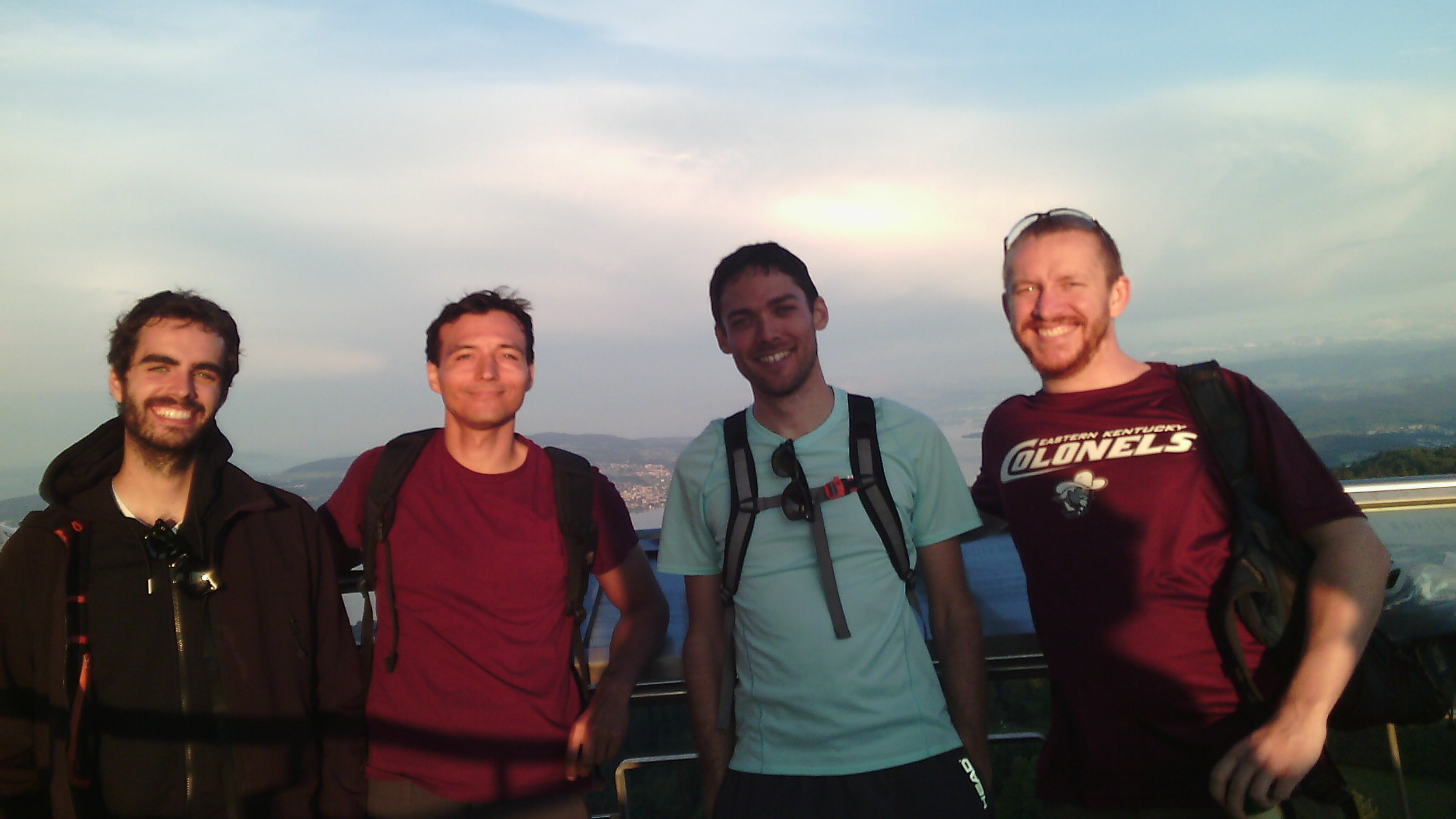 Ahí estamos… Yo, Nathan, John y Robert, después de comernos una bandeja de Jamón serrano que había traído para la ocasión. Pensando que la vida de vez en cuando te ofrece relajados intermedios en los que… en fin, los problemas parece que se los lleva el viento. Después de la subida bajamos a toda velocidad y fuimos a casa de Nathan, nos tomamos unas auto-pizzas denigrantes y una cerveza. (Era la primera vez que tomaba una cerveza desde que llegué). Estaba tan contento charlando de banalidades (como las mujeres y el dinero), en el fondo echaba tanto de menos hablar de estas estupideces que se me pasó la hora un poco. Un poquitito…